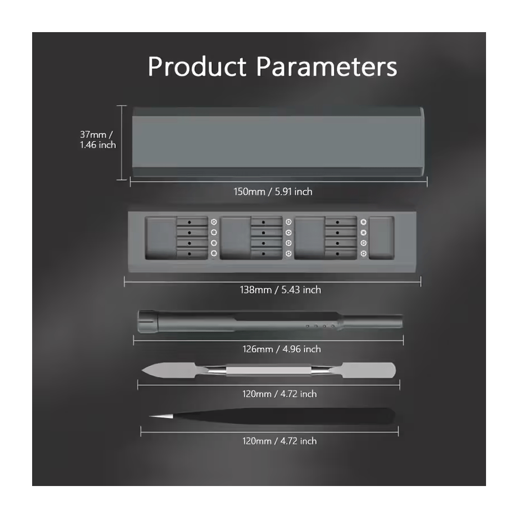 Tackle any repair job with confidence using the 44-in-1 Compact Electronics Screwdriver Kit. Designed for precision, this versatile tool set is perfect for repairing smartphones, laptops, cameras, eyeglasses, watches, and other delicate devices.